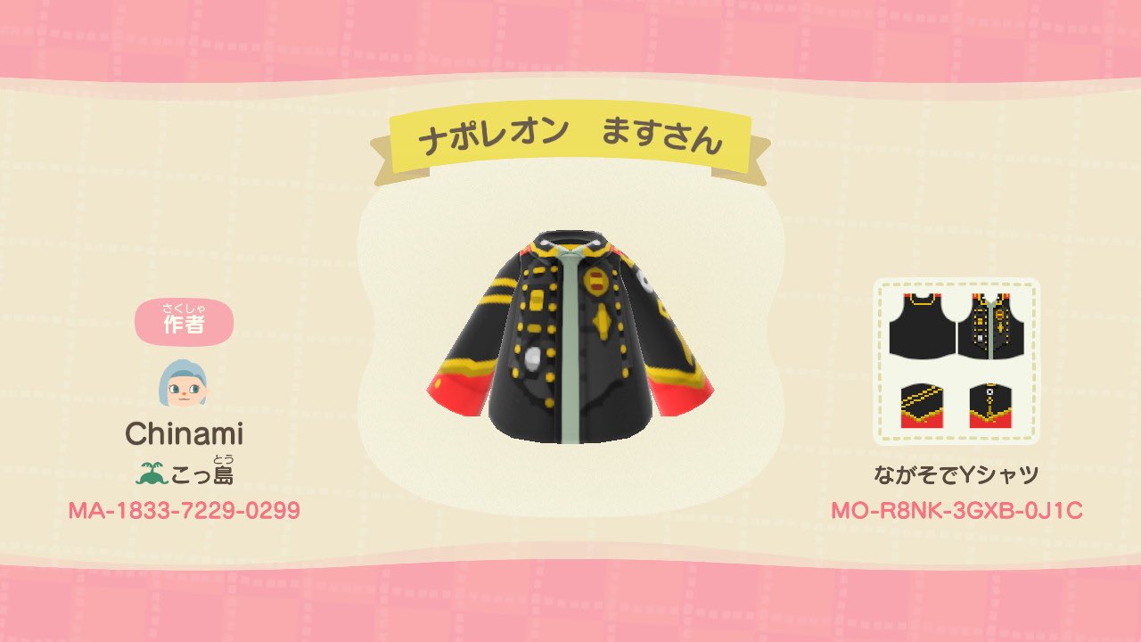 | 모동숲 마이디자인 코드 모음 (옷) (0) | 2020.04.11 |